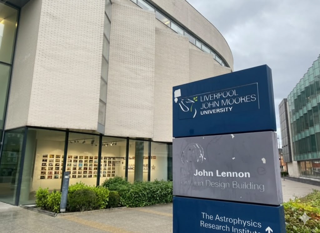 Liverpool John Moores University (LJMU). John Lennon Art and Design Building. En el marco del Festival "Get Your Kits Out". Liverpool, Inglaterra. Noviembre 2024.